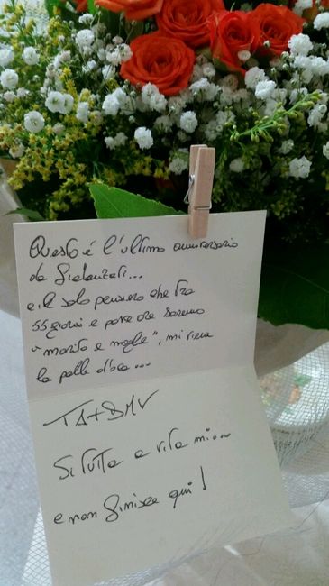 Il mio fm non smette mai di stupirmi...oggi per il nostro nono ed ultomo anniversario da fidanzati quando sono ritornata a casa mi ha fatto trovare un bellissimo mazzo di fiori con qst bigliettino....è il marito perfetto per me, rispecchia tutto ciò...