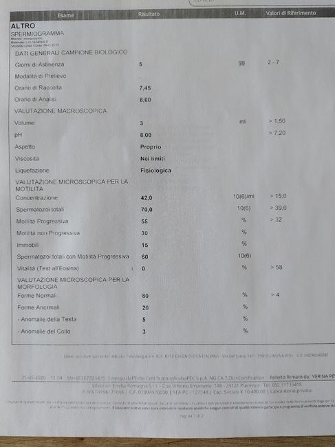 Buongiorno a tutte, in attesa di fare in test di gravidanza tra 8 giorni, dopo aver fatto cura con clomid e gonase, mio marito ha voluto fare uno spermiogramma. Permetto che è stato il nostro primo tentativo perché prima non ovulavo mai da sola e...