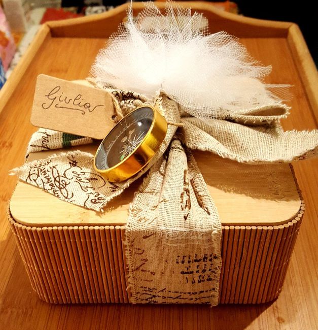 Eccole qui, appena finite di confezionare.. che fatica!!!! 😥 Per 5 testimoni abbiamo scelto una bottiglia di Barolo Chinato di Cappellano che ne è l'inventore. Per la sesta (mia nipote) che è astemia abbiamo scelto una collana artigianale in acciaio...