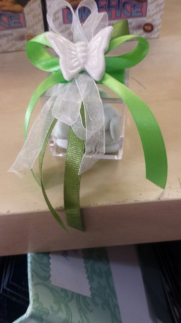 Sposine ke ve ne pare??Ovviamente cn i colori dei veli verdi e confezionata tutto cn il verde! Premesso ke noi nn faremo la classica festa che si usa da me cn tutti gli invitati delle nozze, saremo solo i più intimi, una trentina..È piccina, sarà si...