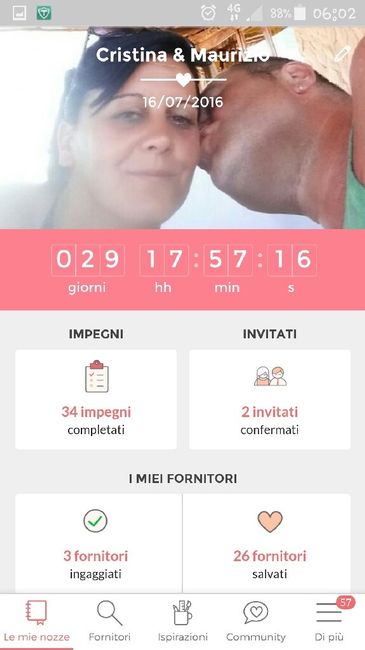 Buongiorno principesse, siete al settimo cielo, non è vero? Ormai contate i giorni e le ore che mancano al grande giorno! Condividiamo in questo topic tutti gli screenshoot del countdown di matrimonio.com! Quanti giorni mancano al...