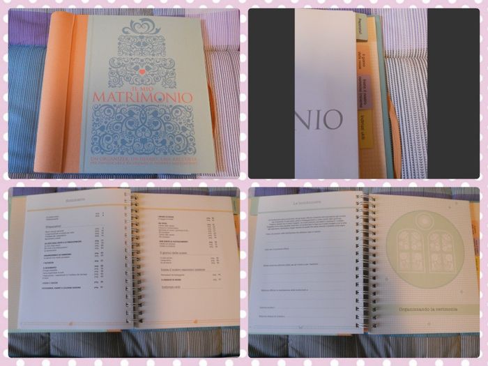 Ciaoooooo!! E' arrivato oggi puntualissimo! Ragazze, è proprio bello! Colorato simpatico frizzante ma anche fine. E' diviso in sezioni, ci sono frasi suggerimenti e tradizioni, pagine su cui scrivere come vi siete incontrati, per descrivere le nozze,...