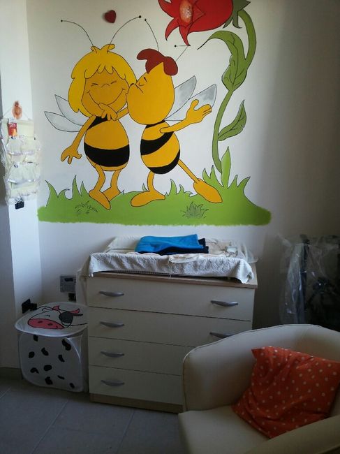 A meno 22giorni dalla data "presunta" festeggiamo con gioia la fine dei lavori nella tua cameretta sperando che affascini anche te il mondo delle api e dei fiori come mamma e papà. ..