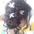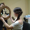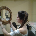 Vi posto delle foto della prova trucco e dell'acconciatura che ho fatto qsto fine settimana.. voglio un vostro parere.. al posto di quei fiori di plastica, ci saranno delle roselline rosse e bianche :...