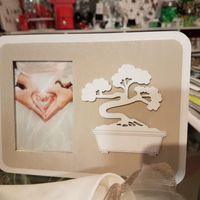 Finalmente la bomboniera. Cosa ne pensate? Verrà chiusa in uno scatolone effetto legno, con il fiocco in “juta” e due in raso color rosa cipria. E per richiamare il legno della cornice ho scelto dei...