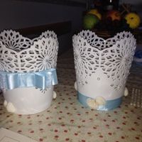 Anziché utilizzare le solite ampolle in vetro ho pensato di utilizzare per la confettata a casa questi vasi di plastica. Che ne pensate? Si accettano suggerimenti per i decori...