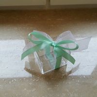 Ciao a tutte belle sposine questa è la mia bomboniera sempre incompleta..e volevo farmi consigliare da voi..se è più carina mettendoci un gessetto magari a forma di cuore nel mezzo al fiocco oppure un...