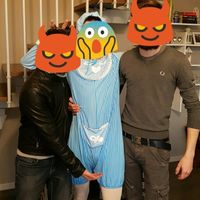 Ecco a voi fm insieme ai 2 testimoni appena prima di uscire x il suo addio al celibato..lo hanno travestito da bambino e dovrà stare così tutta sera. Ero piegata in 2 dalle risate