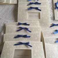 Finalmente ho quasi finito di preparare le mie partecipazioni..sono solidali ma le ho assemblate io e messo il fiocchetto blu. Ne mancano poche..poi devo mettere il biglietto del viaggio di nozze e di...