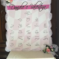 Finalmente a -10 anche il tableau è ultimato! Ci siamo armati di tanta pazienza al pc per progettarlo, l'abbiamo fatto stampare su un pannello di forex e poi mi sono armata di tanta organza, nastri e...