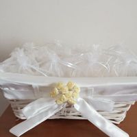 Oggi volevo parlarvi di confezionamento bomboniere. Noi ci faremo aiutare dalle bravissime commesse del negozio che utilizzeranno la scatolina propria della bomboniera, arricchendola però di nastri...