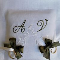 Ciao brides! Che ne pensate di un cuscinetto con le nostre iniziali come portafedi? Con un tocco di verde, per rimanere in tema, sarebbe l'ideale, altrimenti lo vedo troppo spoglio. Voi avete fatto...